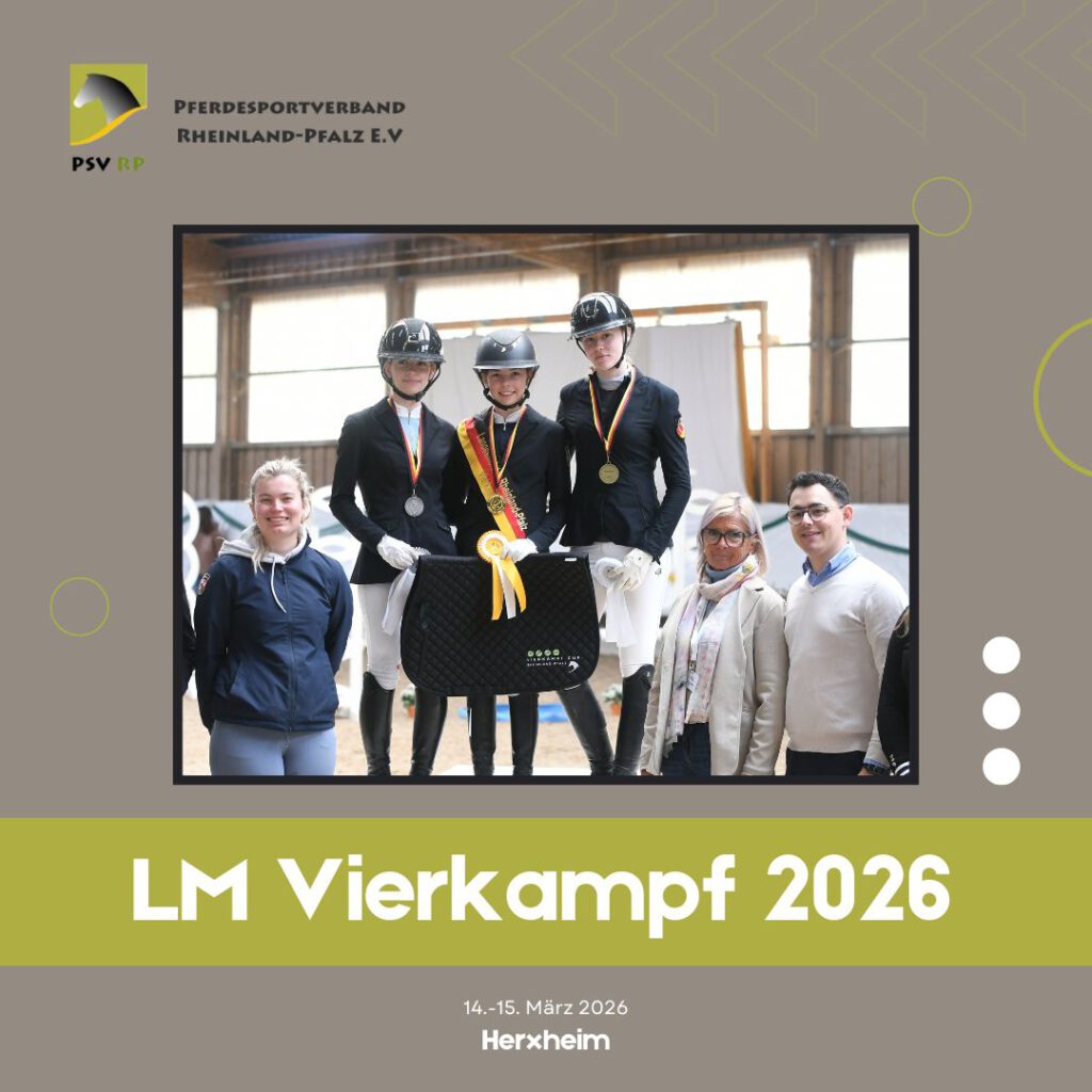 Die ersten Landesmeister des Jahres 2026 stehen fest – die Vierkämpfer ritten, schwammen und liefen am vergangenen Wochenende in Herxheim um die Schärpen und Medaillen. Erfreulich war die gute Beteiligung mit acht Startern im Nachwuchs-Vierkampf, im Vierkampf der Klasse A war die Beteiligung mit vier Reiterinnen dagegen überschaubarer als im Vorjahr. Gesichtet wurde im Rahmen der Landesmeisterschaft für die im […] Continue Reading